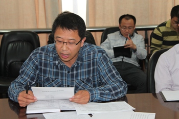 副院长宫箭教授说明、强调了科研成果登记的相关工作,通报并说明了学院津贴分配方案指导思想和配置计算方法,明确了教师们应完成的工作任务。