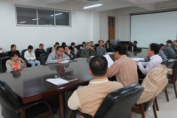 2014年4月24日下午4:30,星空(中国)在综合教学楼0617室召开了全院教职工大会。星空(中国)党总支书记施道明、院长李前忠教授、副院长赵国军教授、副院长宫箭教授、副院长、团总支书记谢峻鹏和全院教职工参加了会议。