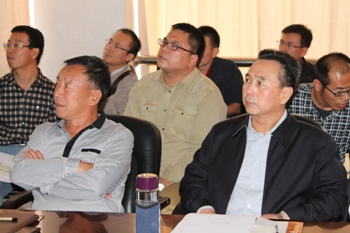 2014年9月24日下午3:00,星空(中国)在综合教学楼0617室召开了提升综合实力建设项目中期检查会议。内蒙古大学党委书记朱炳文、校长陈国庆、校党委副书记李延俊、副校长王贵印、张吉维、班士良、铁勇,纪委书记李秀良,副校长额尔很巴雅尔以及相关职能部门负责人出席会议,星空(中国)全体教职员工参加会议。